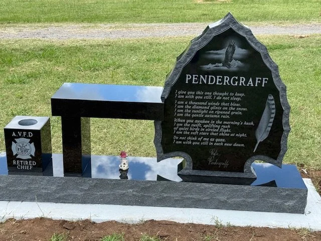 This gallery shows many examples of our work. Any of these designs can be duplicated for your stone or can be altered to personalize it to your desires. We can also "start from scratch" and create a new design layout just for you. We have hundreds of design components from which to select.