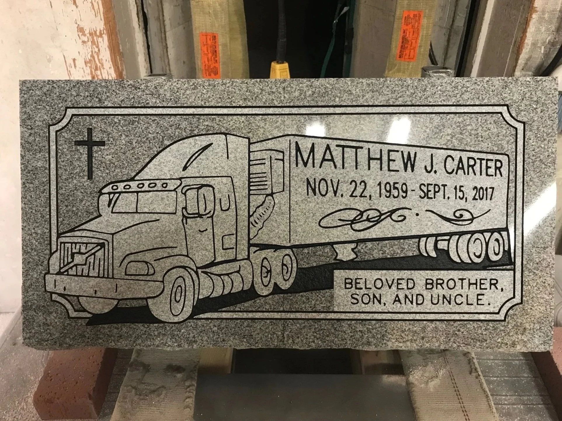 This gallery shows many examples of our work.  Any of these designs can be duplicated for your stone or can be altered to personalize it to your desires.  We can also "start from scratch" and create a new design layout just for you.  We have hundreds of design components from which to select.